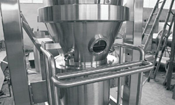 喷雾干燥制粒机是一种将喷雾干燥技术与流化床制粒技术有机地结合为一体的新型一步制粒设备。它利用负压热气流使雾化液滴在干燥室内处于流化状态的载体上快速干燥,并相互粘结成粒,其粒度大小可根据调整参数来控制。