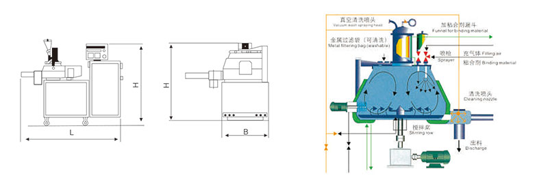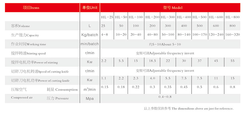 HL系列湿法混合制粒机是利用搅拌浆的强力搅拌作用使(粉)料在容器 内形成轴向、径向、切向的三维运动状态,从而达到混合均匀的目的,再经立向切刀制成颗粒。